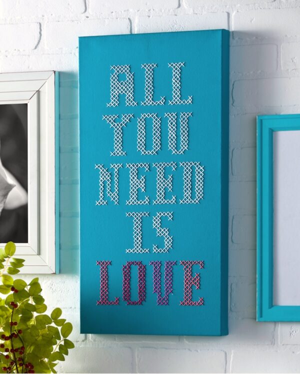 If you’ve ever seen a painting and wondered if you could punch it up with a little hand-stitching, then you were right! You can overpaint a stretched canvas and create an all-new cross-stitch design on it, or you could embellish a thrifted painting with cross stitch.